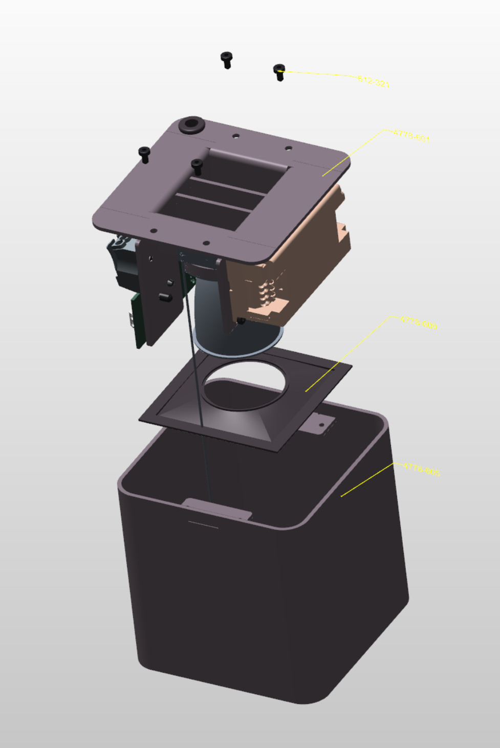 - Achten Sie darauf, dass die Kabelverbindungen nicht eingeklemmt werden. Überprüfen Sie die korrekte Ausrichtung der optischen Komponenten zur Gehäuseöffnung.